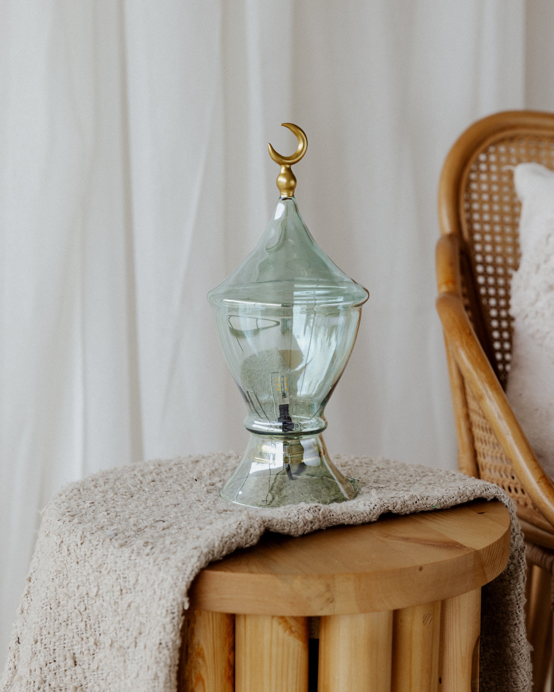 A decorative lantern inspired by Ramadan reflections, designed to hold candles or fairy lights for a serene evening glow.